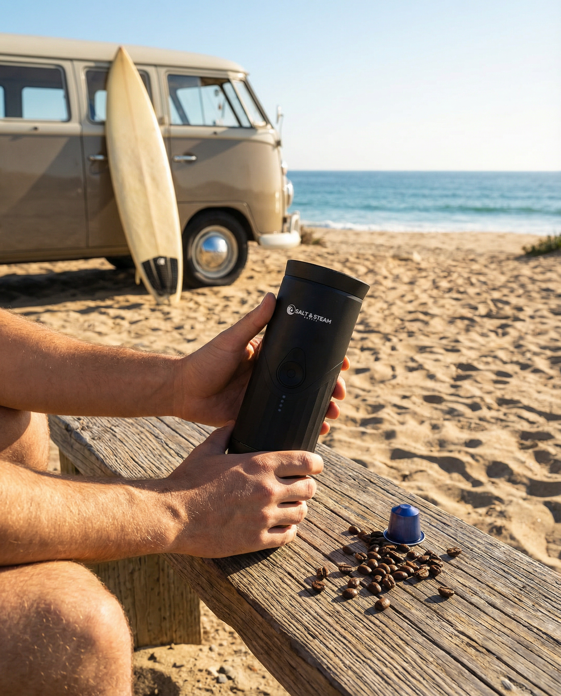Salt & Steam Coffee was created for those who start their day outdoors, on the road, or far from a café queue. Inspired by the Atlantic coast of the West of Ireland, where cold water swims meet hot coffee, our espresso maker brings warmth, ritual, and flavour into every kind of morning.